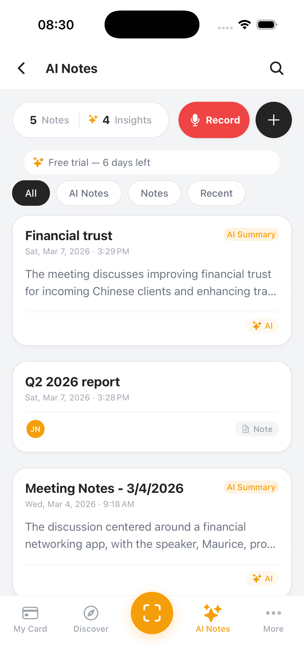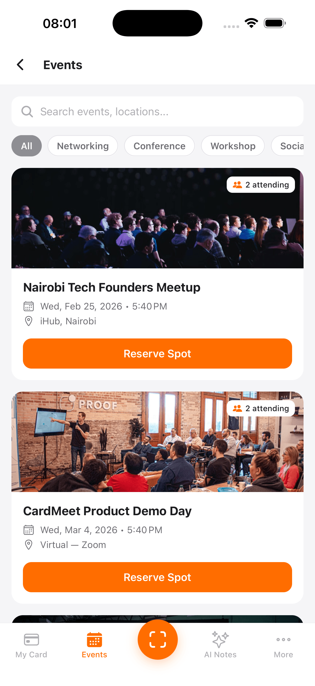 Create stunning digital business cards, share with a QR code, discover networking events, and let AI turn your meetings into actionable insights — all from one app.